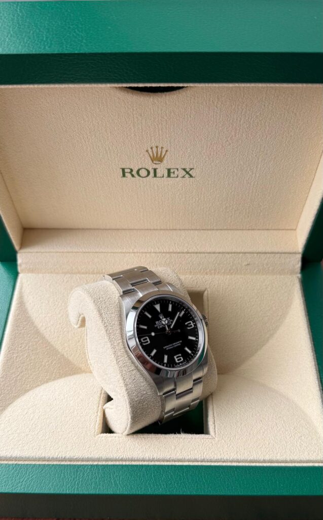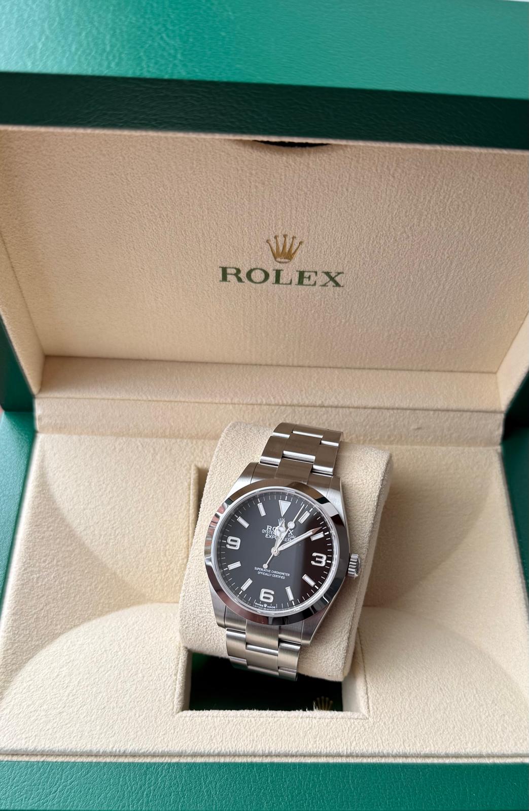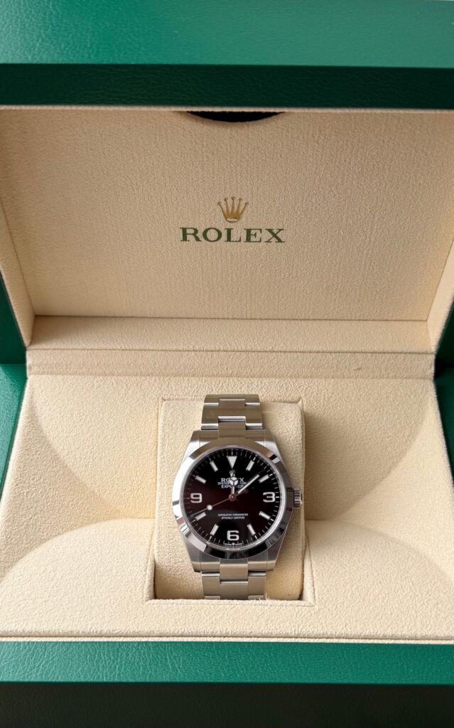 Te koop aangeboden: een prachtige Rolex Explorer 40 uit 2024 in uitzonderlijke staat. Dit iconische model staat bekend om zijn tijdloze design, robuustheid en perfecte leesbaarheid, zowel in dagelijks gebruik als bij avontuurlijke omstandigheden.